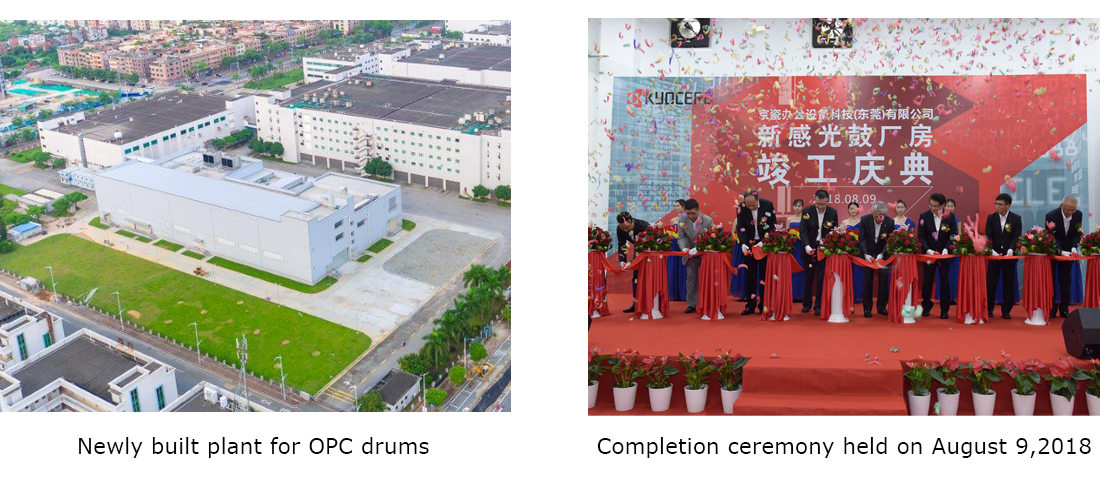 Kyocera Document Solutions Inc. (President: Norihiko Ina), one of the world's leading document solutions companies, has announced that it has completed construction of a new plant for Organic Photo Conductor (OPC) drums in Dongguan, Guangdong, China, which has been under development since July 2017. The new plant was constructed on the property of Kyocera's major production site in China, KYOCERA Document Technology (Dongguan) Co., Ltd., (hereinafter, "the Plant").