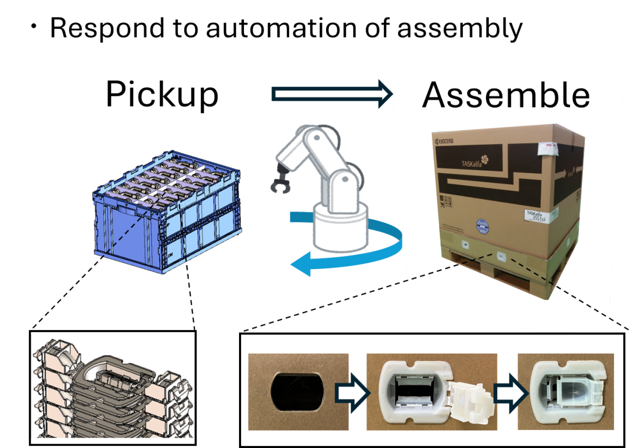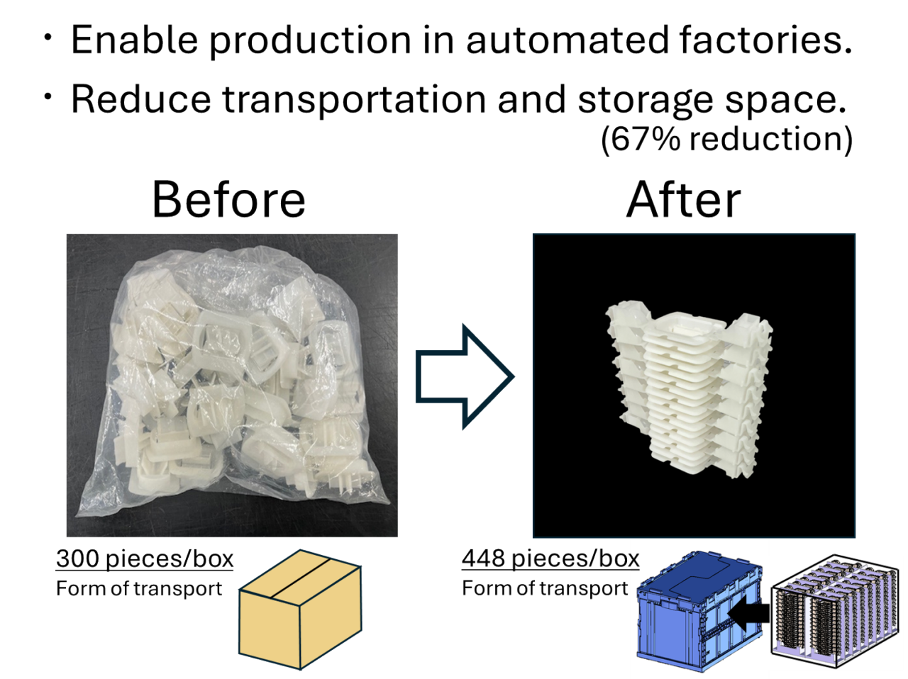 Joint parts can now be delivered to the factory stacked on top of each other, making it easier to remove parts. This allows assembly to be automated.