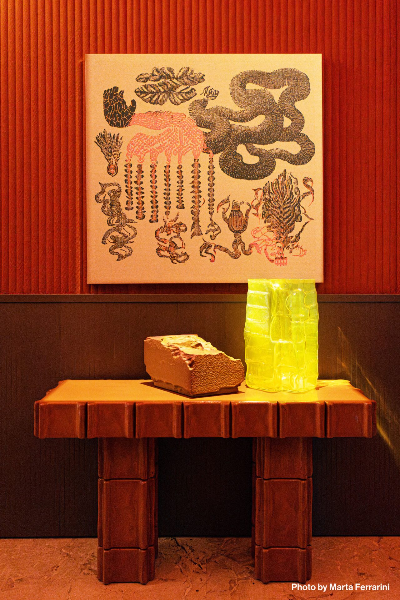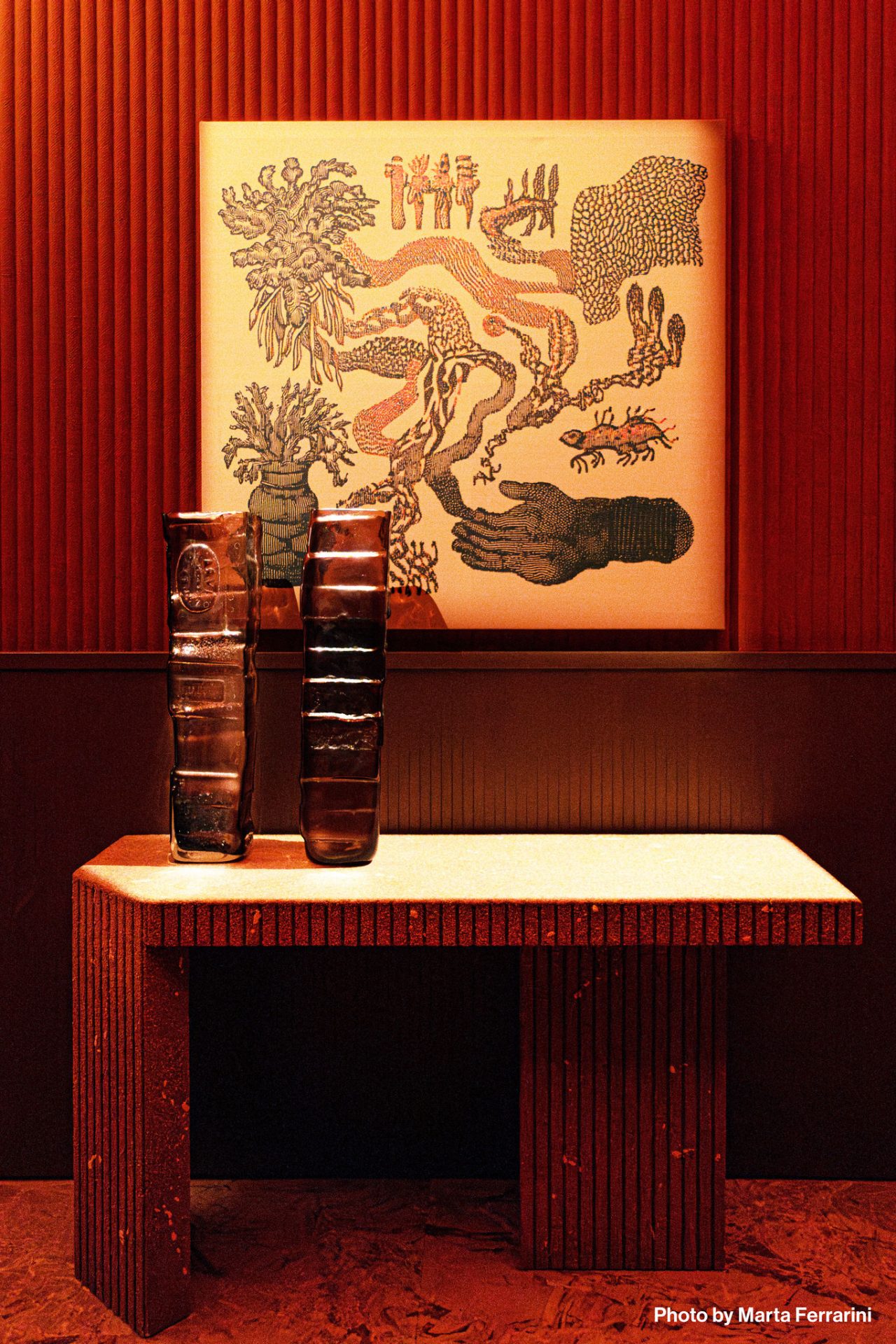 Three works were featured in Alchemic Corridor, and one work was featured in the Herbarium Restaurant. Additionally, the scarves worn by the staff also utilize the printing technology of FOREARTH.