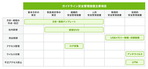 特に、従来よりも厳格な個人情報の取扱いが必要となるため、企業はマイナンバーの漏えい、滅失・毀損の防止といった、適切な安全措置管理に対応する必要があります。さらに、マイナンバーを扱う担当者に対しての、適切な監督や教育を行わなければなりません。京セラドキュメントソリューションズジャパンは、社員教育を始め、UTM※や情報漏えいの防止などの安全管理措置対策など、お客様の状況やシステム環境に合わせた、最適なソリューションとサービスをご提供し、お客様のビジネスの発展を支えてまいります。