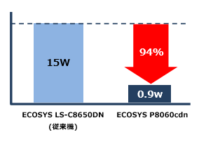 新コントローラーの採用により、従来機※よりもスリープ時の消費電力を約94%改善しました。休日や夜間など使用しない時間帯の待機電力の削減に貢献します。