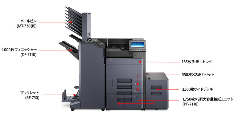 | ECOSYS P8060cdn | 55枚(カラー)/ 60枚(モノクロ) | 398,000円 | 2017年8月 | 100台/月 |