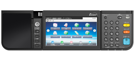 当社A3複合機と同等の操作性を実現しました。スマートフォンのように画面をタッチしたまま左右に動かすスワイプ機能に対応しただけでなく、ホーム画面をカスタマイズすることで、頻繁に使う機能へワンタッチで設定することができます。