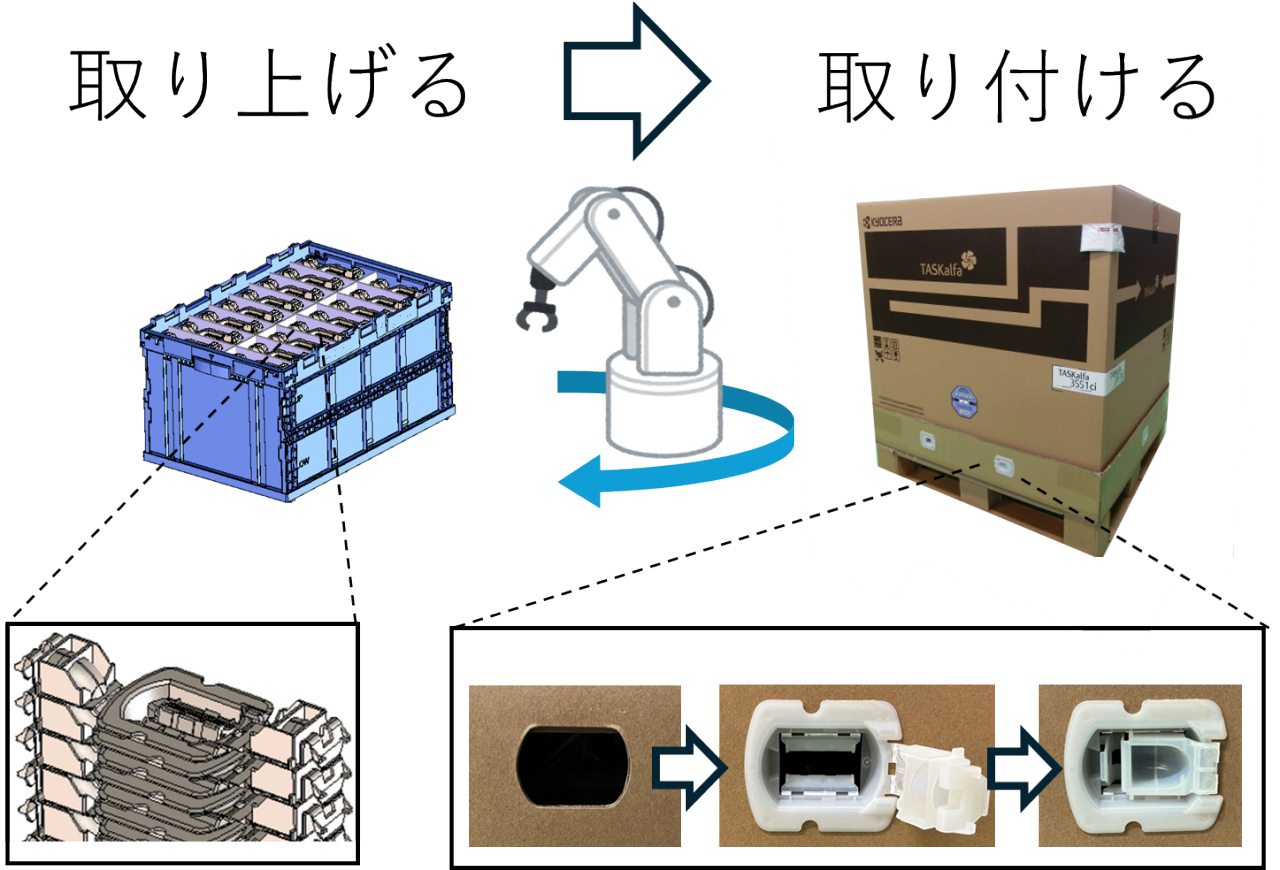 ジョイントパーツを重ねた状態で工場に納品できるようになったことで、部品の取り出しが容易になりました。それにより組立を自動化することができます。
