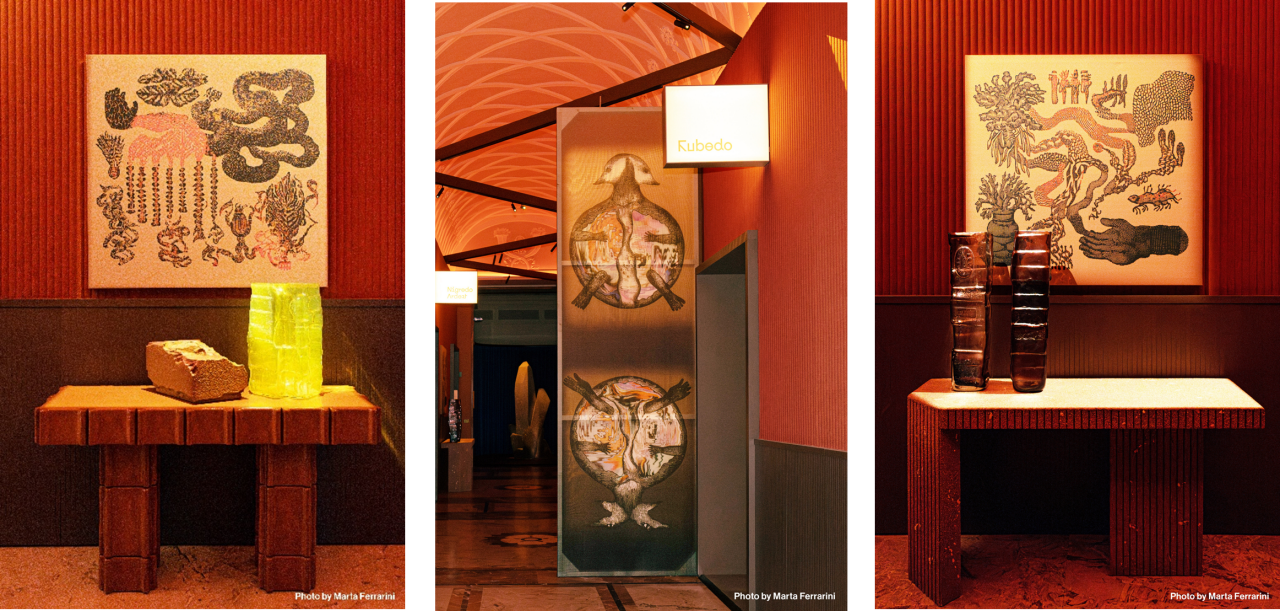 “Alchemic Corridor”に3つ、”Herbarium Restaurant“に1つの作品が展示されています。また、スタッフが着用するスカーフにもFOREARTHのプリント技術が使用されています。