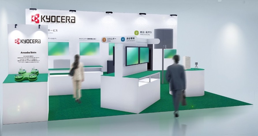 京セラグループでは、創業以来培ってきた技術やノウハウを活用し、環境の変化に柔軟に対応し自立共生する持続可能なまちづくり「アメーバタウン」に取り組んでいます。本展示会においては、ブース内に公共窓口サービス、防災・見守り、エネルギー、通信環境の4つのゾーンを設け、自治体業務の効率化や公共安全に貢献する当社グループの技術・製品・ソリューションを展示いたします。