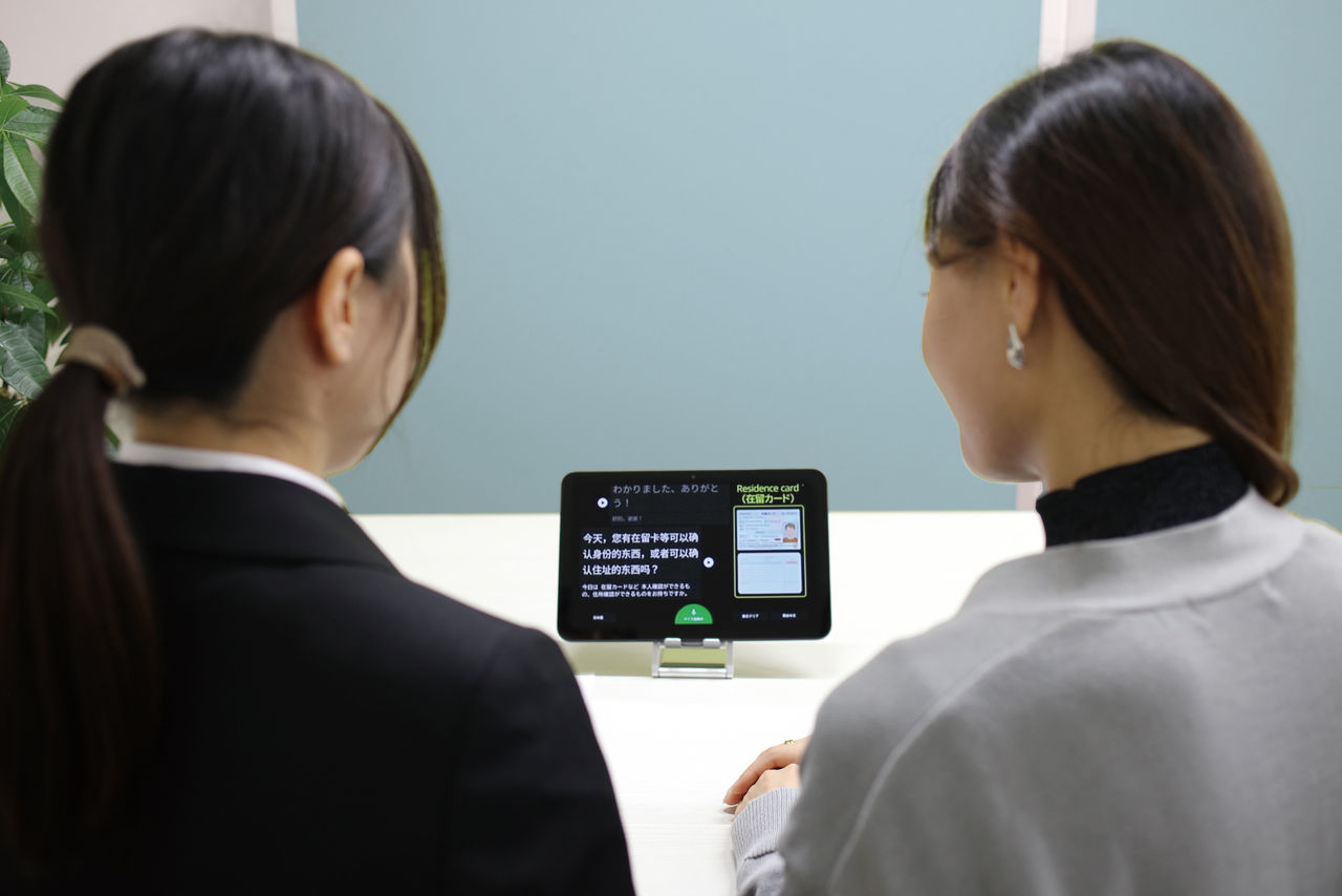 導入前に実機で使い勝手を確認しましたが、基本的にはボタン1つで動かせるシンプルな操作性や、相手の顔を見ながら対応できる点がよいと思いました。特に機械翻訳が非常に速く、自然な会話を途切れることなく続けられる点が印象的でした。採用の決め手となったのは、高齢者や障がいのある方とのコミュニケーションをスムーズにする機能が充実している点です。双方向の翻訳表示やルビ表示、図解表示など、理解を助けるための工夫が盛り込まれているほか、AI補正機能利用時のセキュリティーの仕組みも、大変安心できる要素として評価しました。