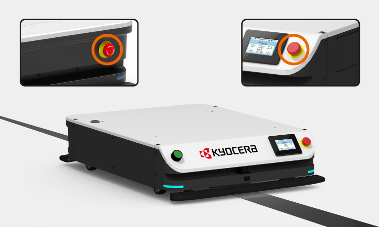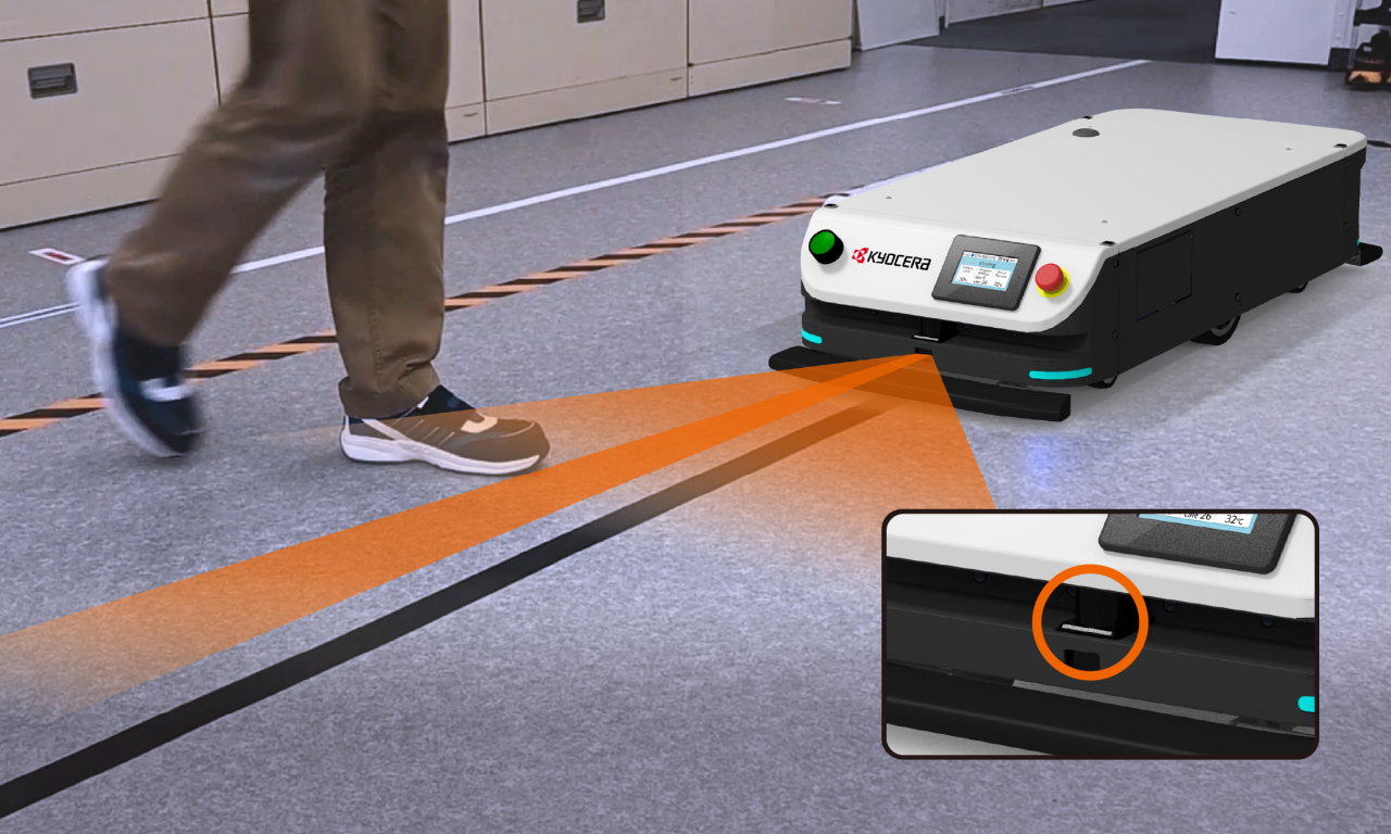 障害物センサーは、障害物との距離によって2段階で動作し、遠距離で検知した場合は速度を制限し、近距離で検知した場合は減速して停止します。障害物センサー以外に安全バンパーを装備しています。こちらは障害物が接触すると、AGVは非常停止します。