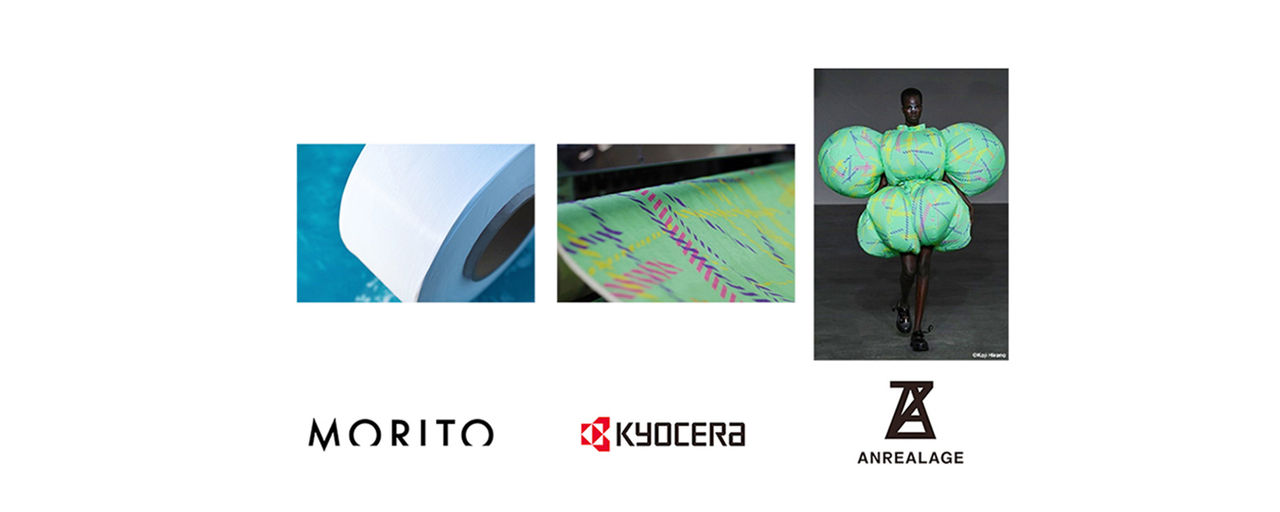 モリトアパレル株式会社が、廃漁網をリサイクルした糸「MURON(ミューロン)」を使用した生地に、当社の捺染インクジェットプリンター「FOREARTH(フォレアス)」で印刷し制作されたコラボレーション作品を、2025年春夏 パリ・ファッションウィーク®(パリコレ)のウィメンズコレクションで、ファッションブランド「ANREALAGE」から発表されました。
