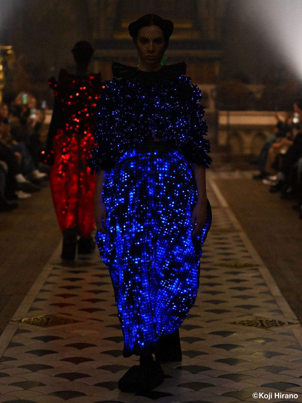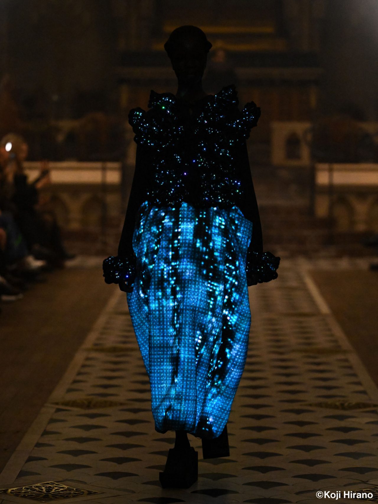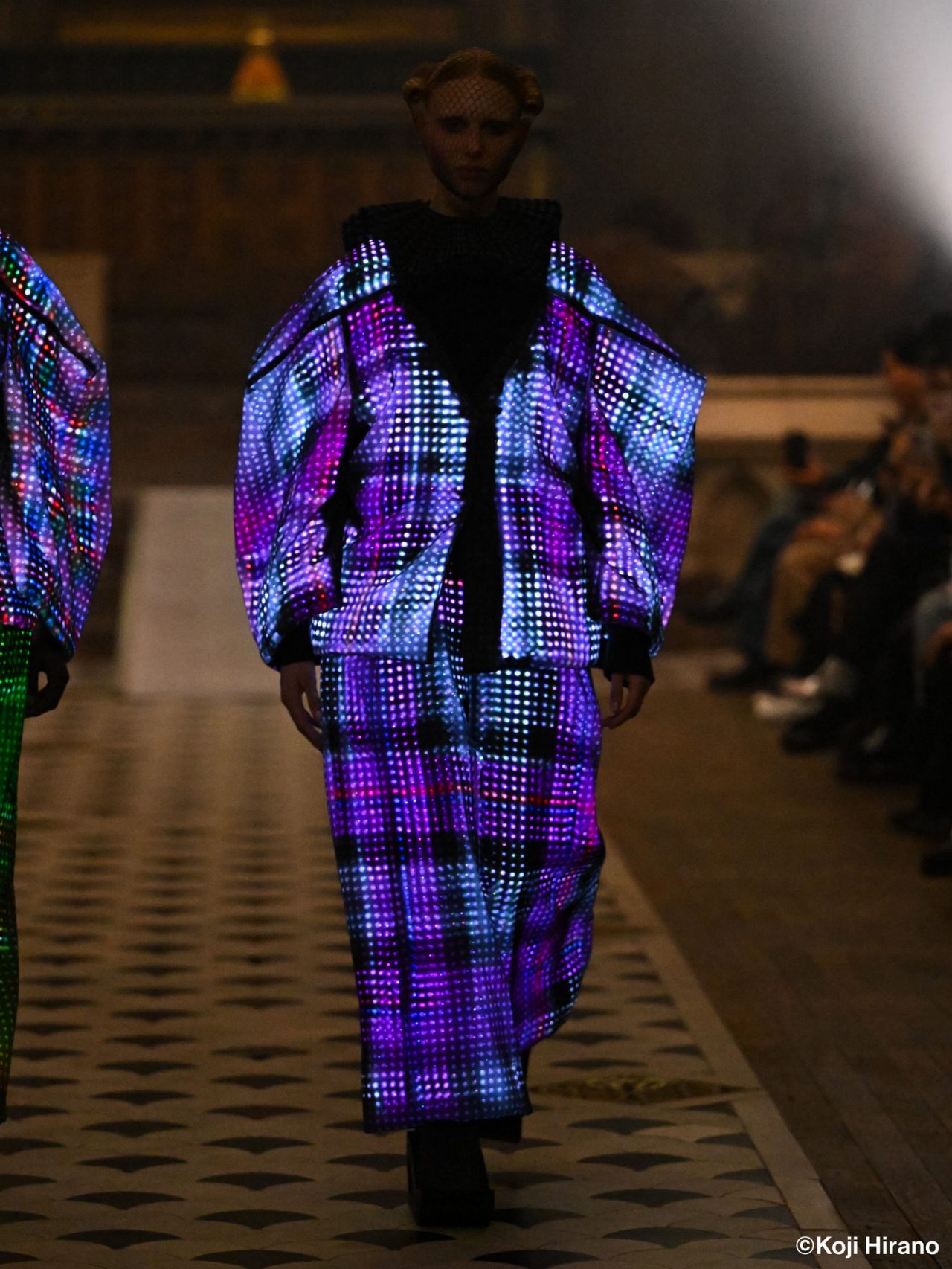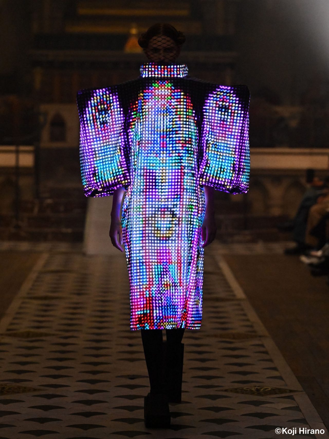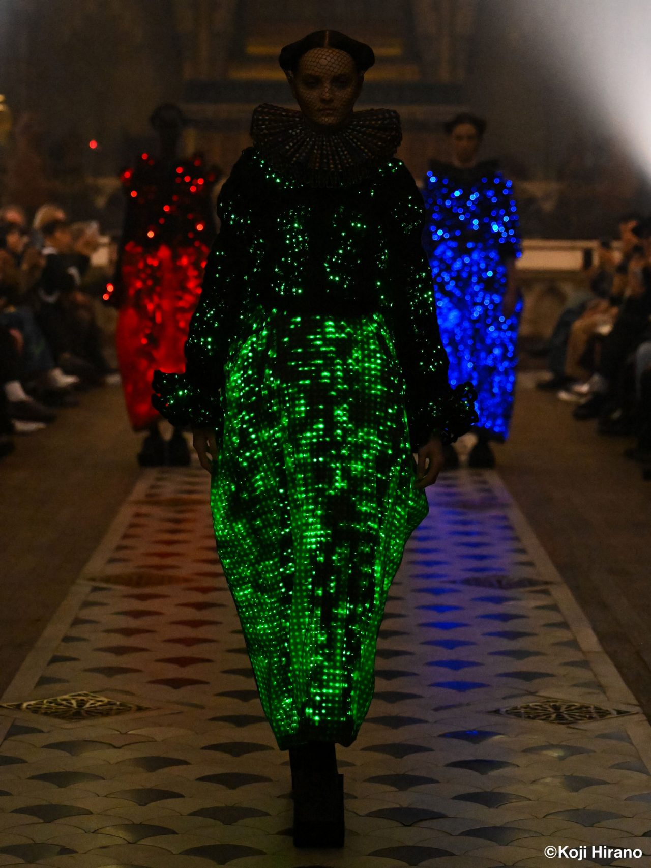 パリ・ファッションウィーク ウィメンズコレクションは、2025年3月3日(月)から3月11日(火)までフランス・パリで開催されます。ANREALAGEのショーは、パリ現地時間の3月4日(火)16:00にパリの中心、シャンゼリゼ通りとセーヌ川を結ぶジョルジュサンク通りに面した、19世紀後半に建てられ歴史的建造物に指定されているゴシック様式の大聖堂「American Cathedral」で、ランウェイ形式で発表されました。フランス出身のエレクトロニック音楽デュオで元ダフト・パンクのトーマ・バンガルテル氏による荘厳な音楽と、森永氏のプリントと光の斬新なコレクションが融合し、大きな盛り上がりをみせました。ファッションとアート、そして歴史的な建造物が融合する瞬間をデザイナーの森永氏は創造し、訪れた人々にとって忘れられない体験となりました。