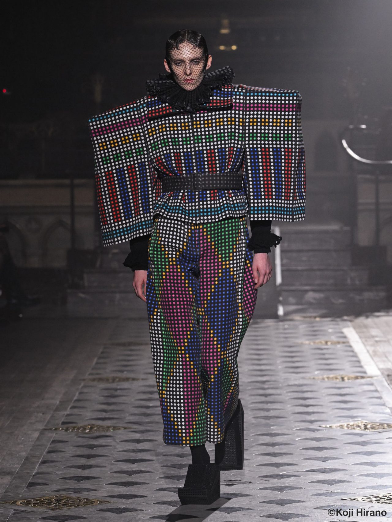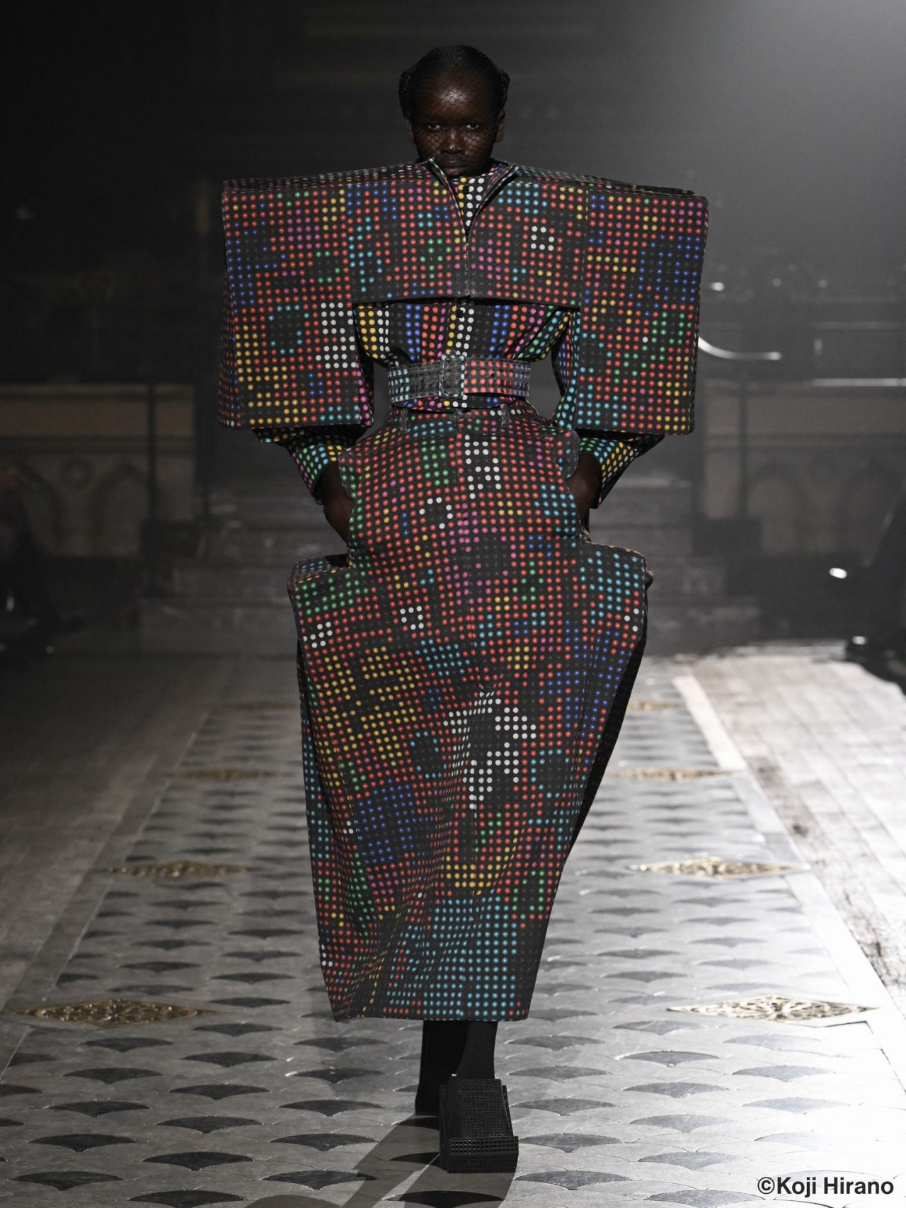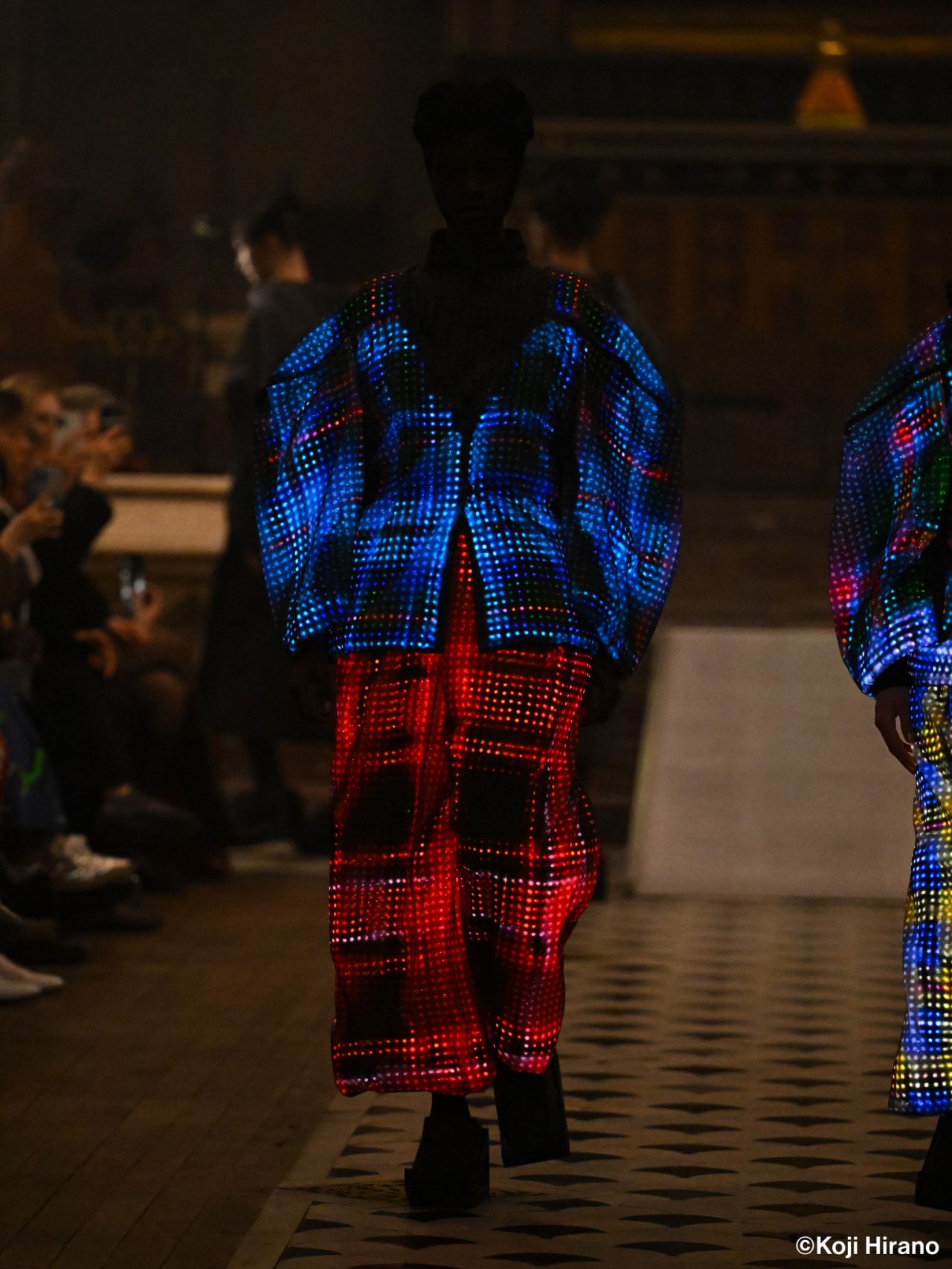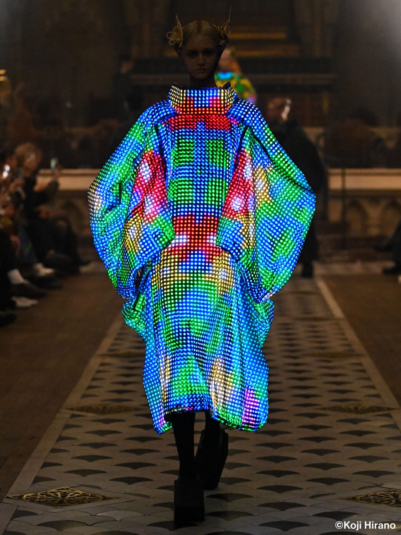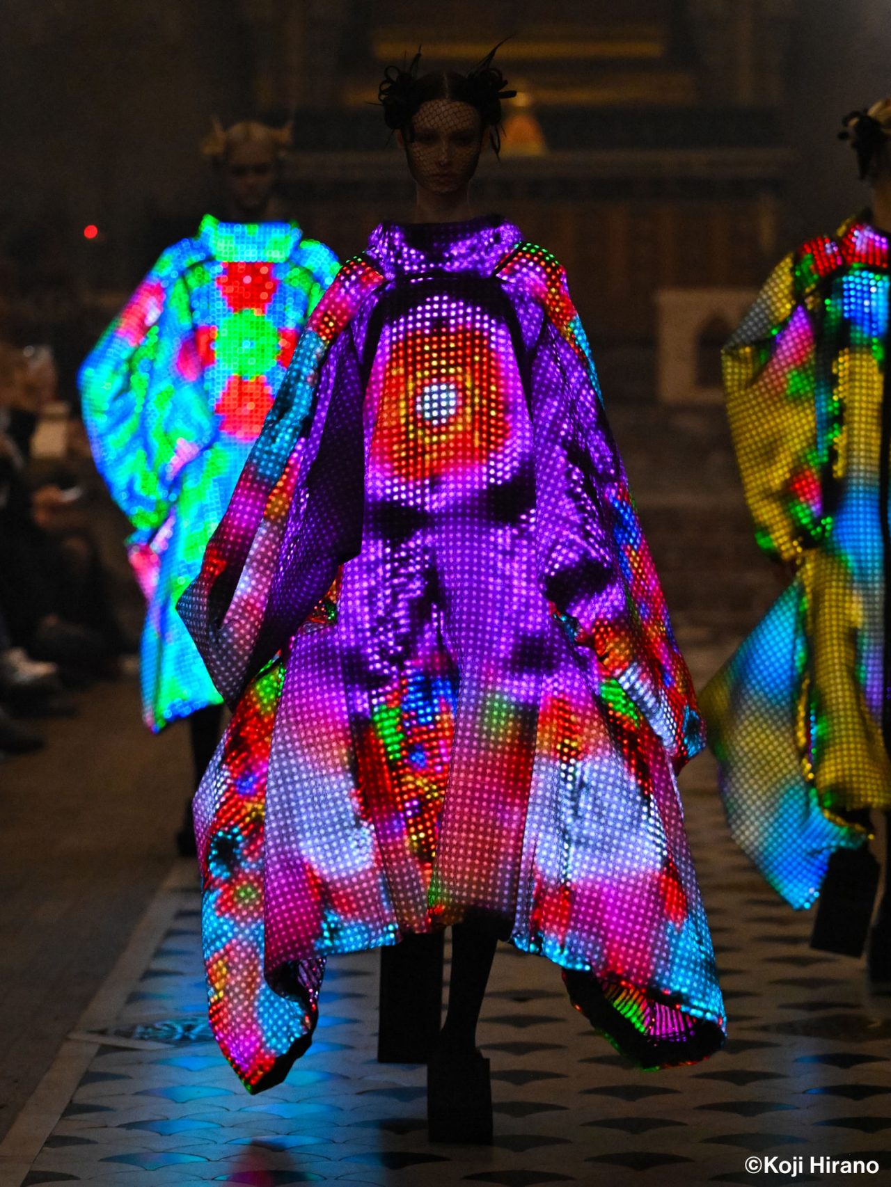 パリ・ファッションウィーク ウィメンズコレクションは、2025年3月3日(月)から3月11日(火)までフランス・パリで開催されます。ANREALAGEのショーは、パリ現地時間の3月4日(火)16:00にパリの中心、シャンゼリゼ通りとセーヌ川を結ぶジョルジュサンク通りに面した、19世紀後半に建てられ歴史的建造物に指定されているゴシック様式の大聖堂「American Cathedral」で、ランウェイ形式で発表されました。フランス出身のエレクトロニック音楽デュオで元ダフト・パンクのトーマ・バンガルテル氏による荘厳な音楽と、森永氏のプリントと光の斬新なコレクションが融合し、大きな盛り上がりをみせました。ファッションとアート、そして歴史的な建造物が融合する瞬間をデザイナーの森永氏は創造し、訪れた人々にとって忘れられない体験となりました。