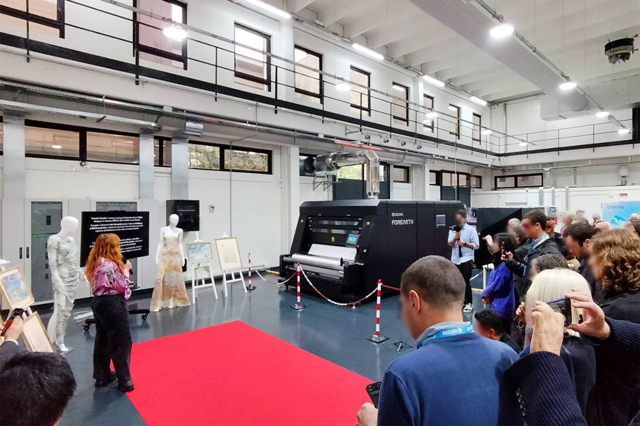 京セラドキュメントソリューションズが、2025年4月14日(月)、イタリア・ミラノに、環境配慮型 捺染インクジェットプリンター FOREARTHを使ったテキスタイルプリントを実体験できるショールームとして 「FOREARTHエクスペリエンススタジオ(以下:スタジオ)」を開設しました。