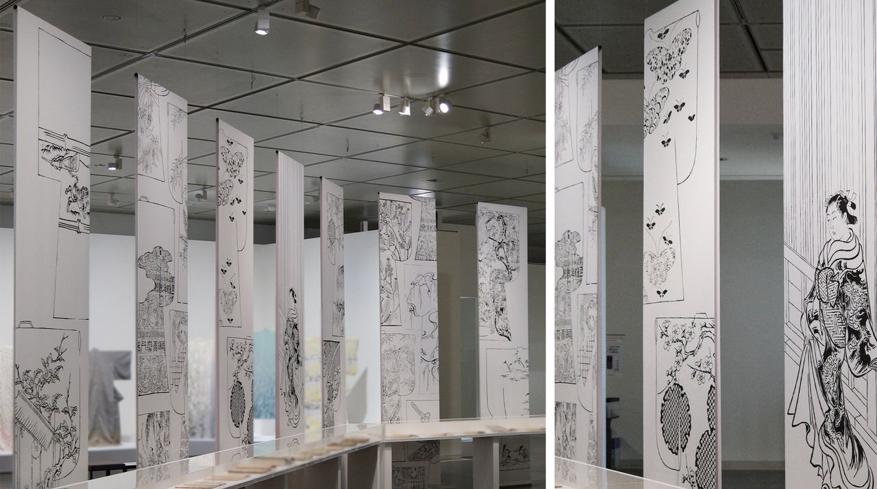 第1章「平面と立体の間で きものと雛形本」の会場装飾