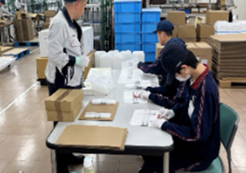 工場での製品の梱包作業の様子