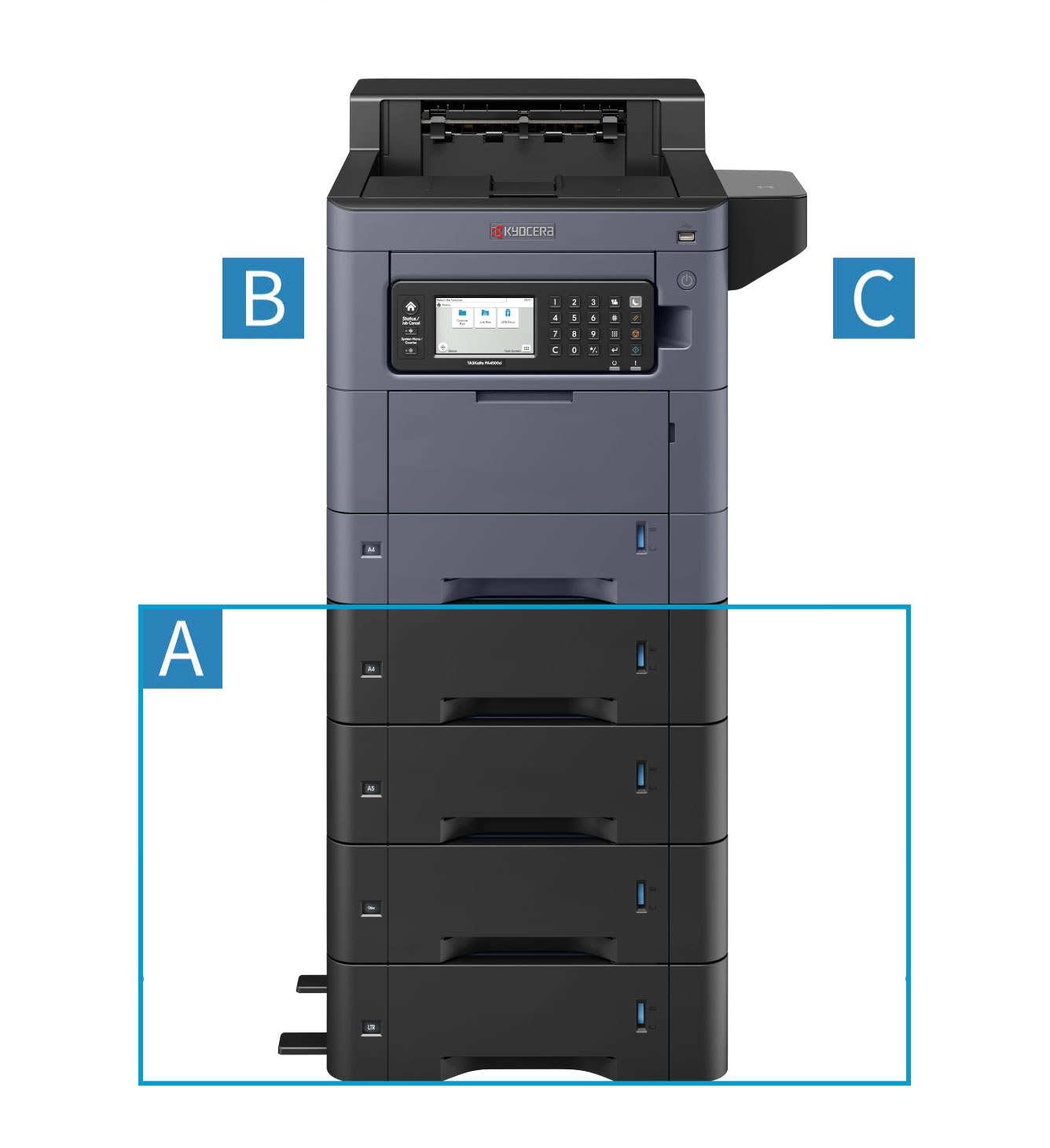 The paper feeder holds 600 sheets of interchangeable A4, A5, and B5 paper.